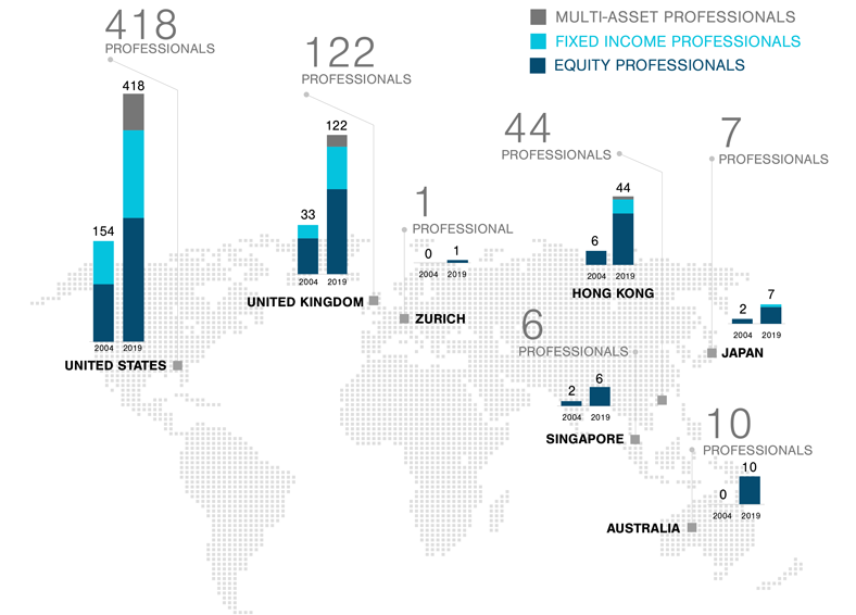 As a global investment manager, we actively listen, anticipate, and develop strategies that respond to the needs of our clients. Each strategy is supported by our strategic investing approach—an approach driven by independent thinking and guided by the rigor of our global research. Our investment professionals work together across regions, sectors, and asset classes, as they strive to select the right investment opportunities for our clients.