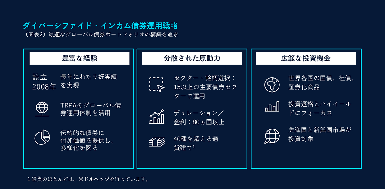 最終的に、ティー・ロウ・プライスのダイバーシファイド・インカム債券運用戦略に基づくアクティブ運用と厳格なリスク管理は、異なる市場サイクルを通じてボラティリティを最小化することに役立ちます。