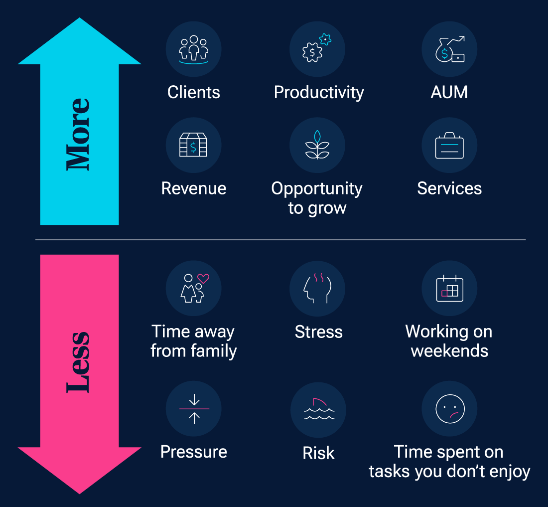 What about the idea of leveraging teaming to do “less”? Teaming is a way for advisors to spend the bulk of their time working on things they find most fulfilling. Ultimately, “less” can add up to more and help you thrive.