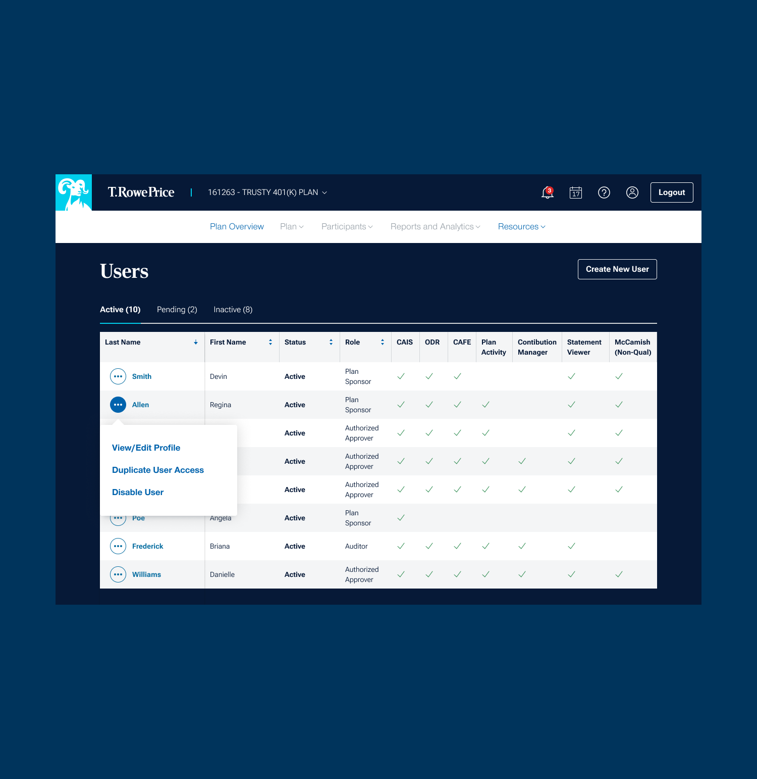 By default, you’ll see Active users in your table. Click the “Pending” and “Inactive” tabs to view other users.